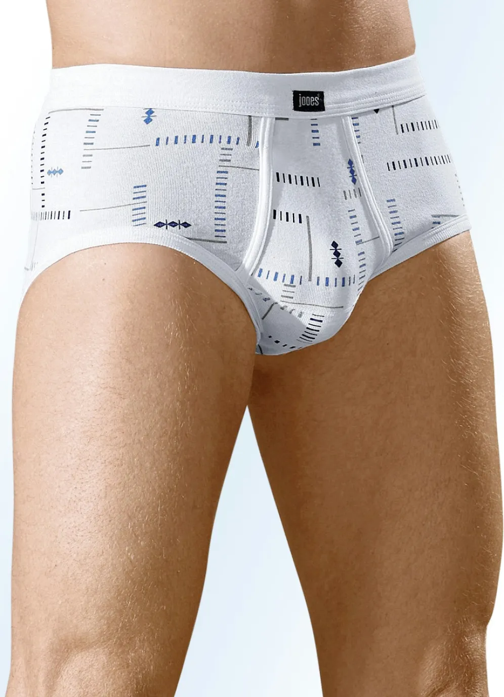 Slip mit Alloverdessin, Label vorne am uni Softbund sowie paspeliertem Eingriff.