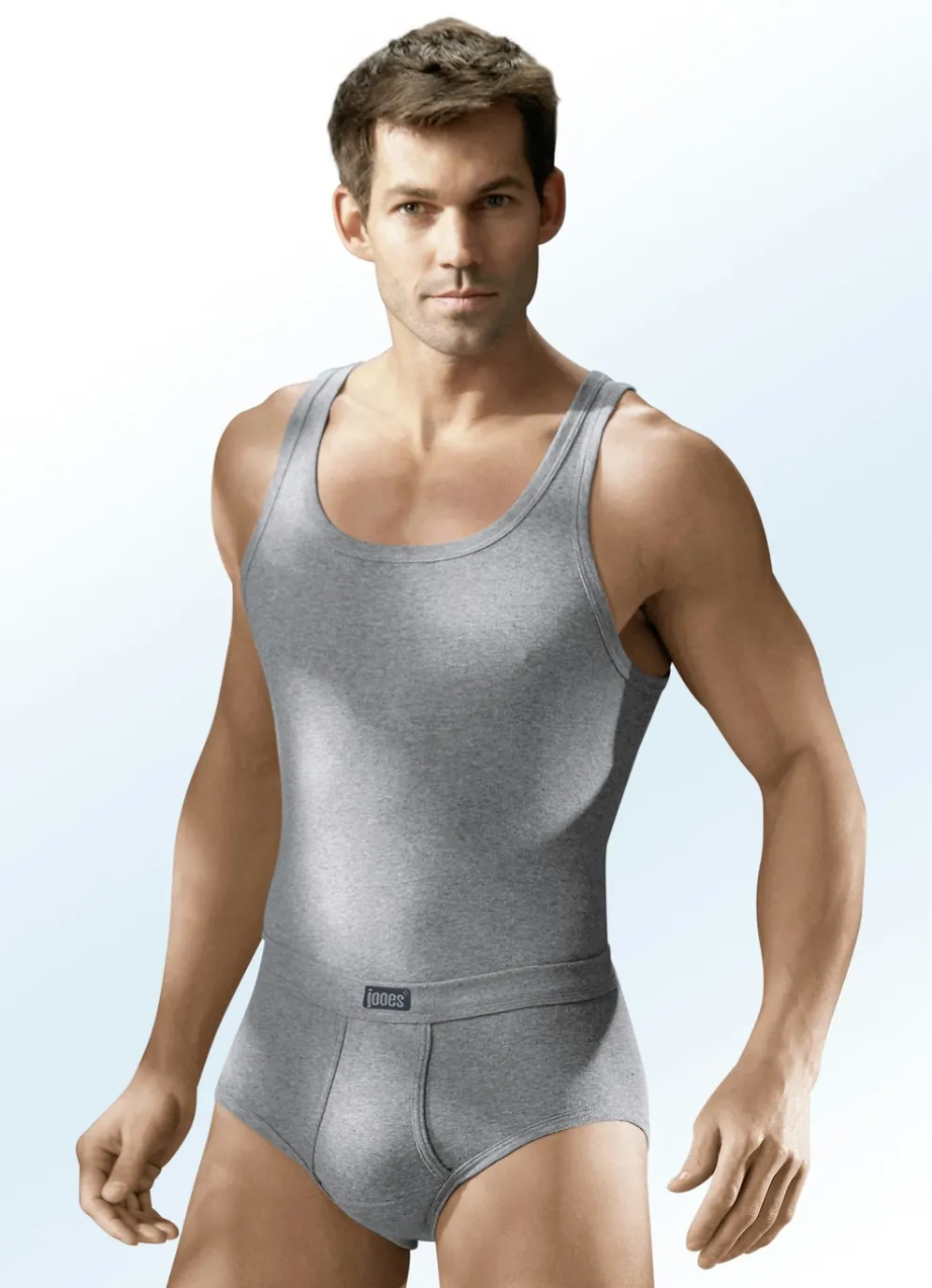 Viererpack Slips aus Feinripp mit Eingriff, uni bunt in 2X Steingrau Meliert, 2X Jeansblau Meliert und in Größe 5.