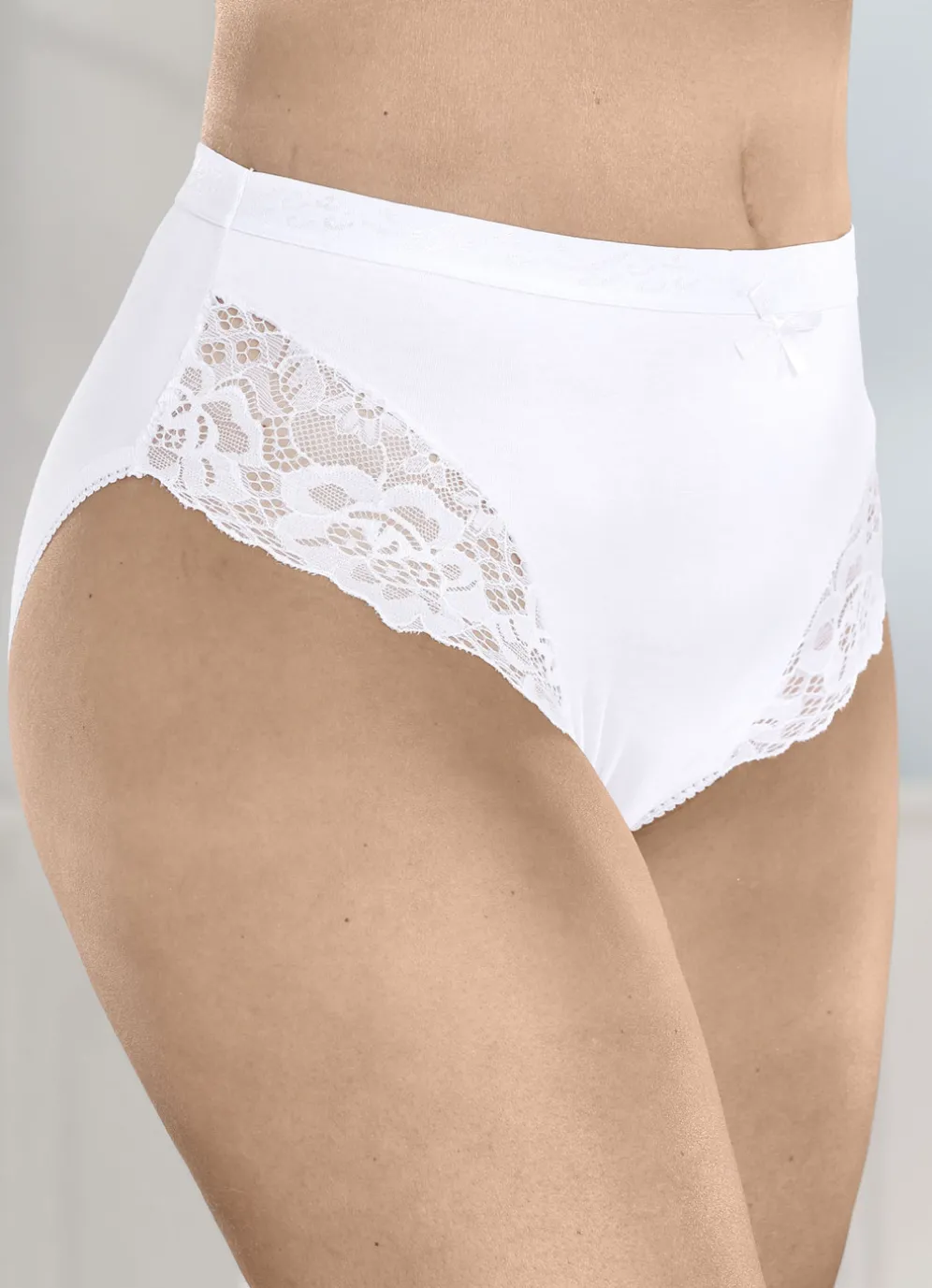 Viererpack Slips mit elastischer Spitze in Weiss und in Größe 42.