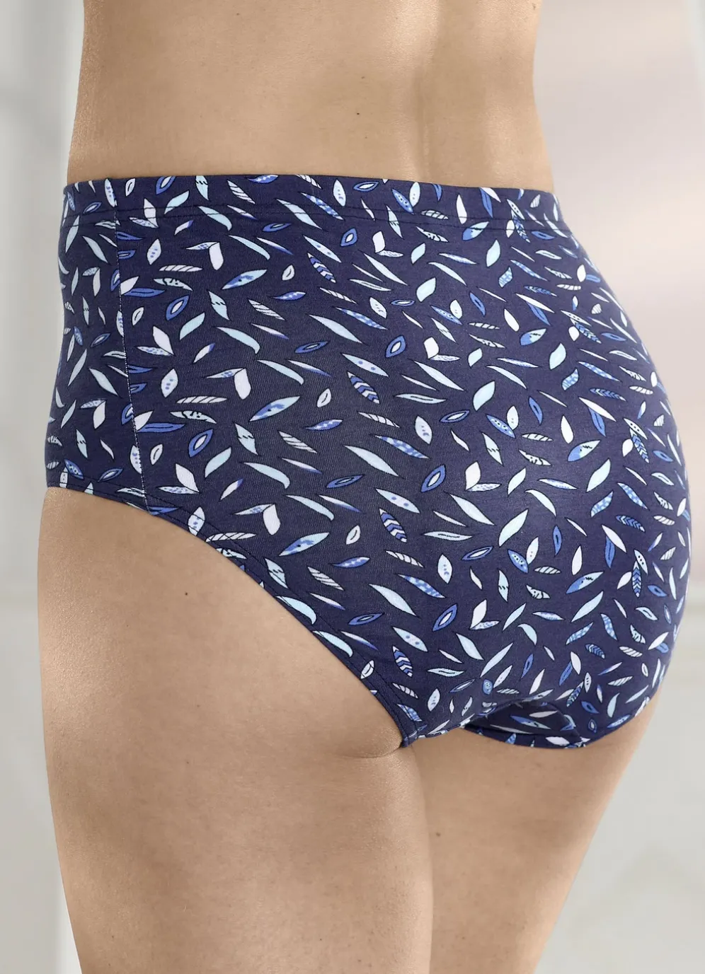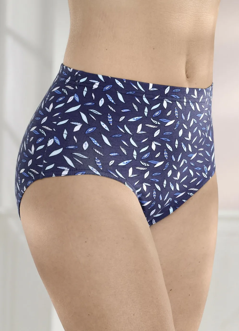 Slip in Marine, mit farbharmonischem Druckdessin sowie Gummizug im Bund.