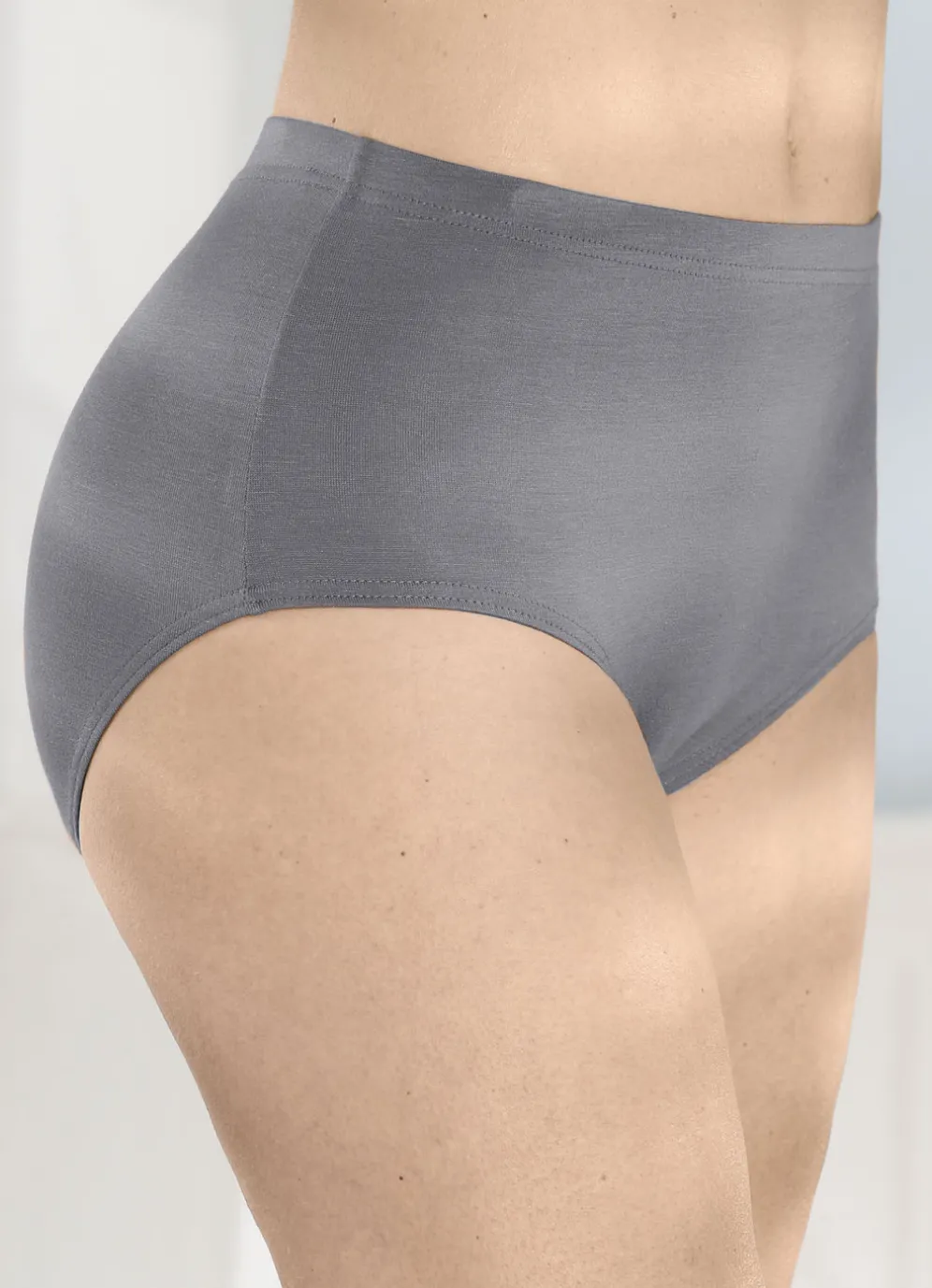 Viererpack Slips mit Gummizug in 2X Grafit, 2X Jeansblau und in Größe 38.