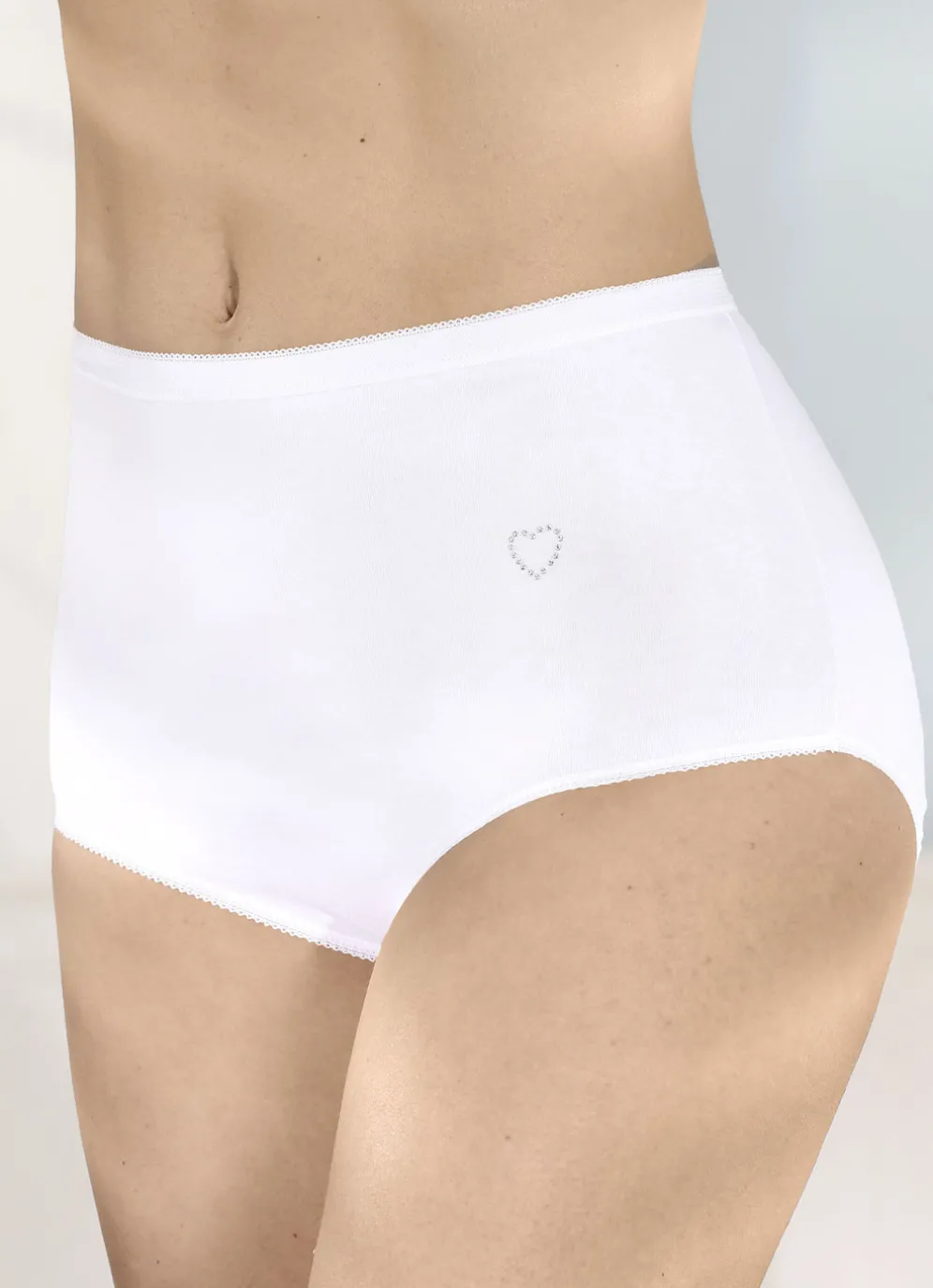 Viererpack Slips mit kleinem Strassherz im Vorderteil in Weiss und in Größe 42.