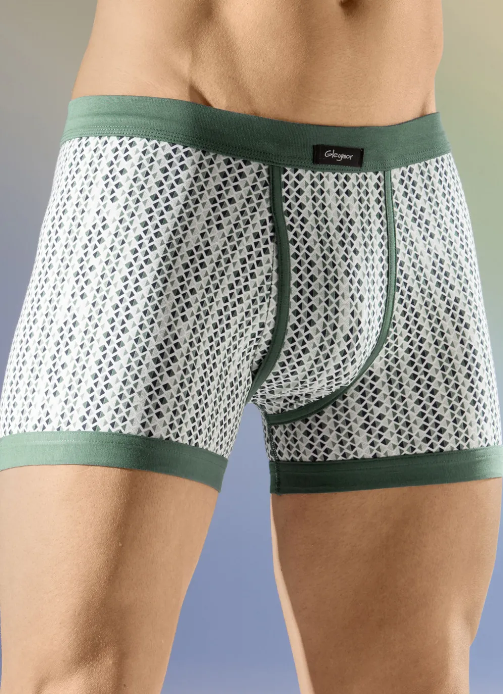 Viererpack Unterhosen mit Softbund in 2X Grün-Weiss, 2X Jeansblau-Weiss und in Größe 6.