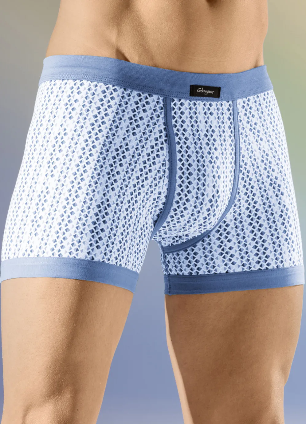 Allover dessinierte Unterhose mit Label am Softbund, paspeliertem Eingriff, Kontrastpaspeln sowie kontrastfarbenen Abschlüssen.