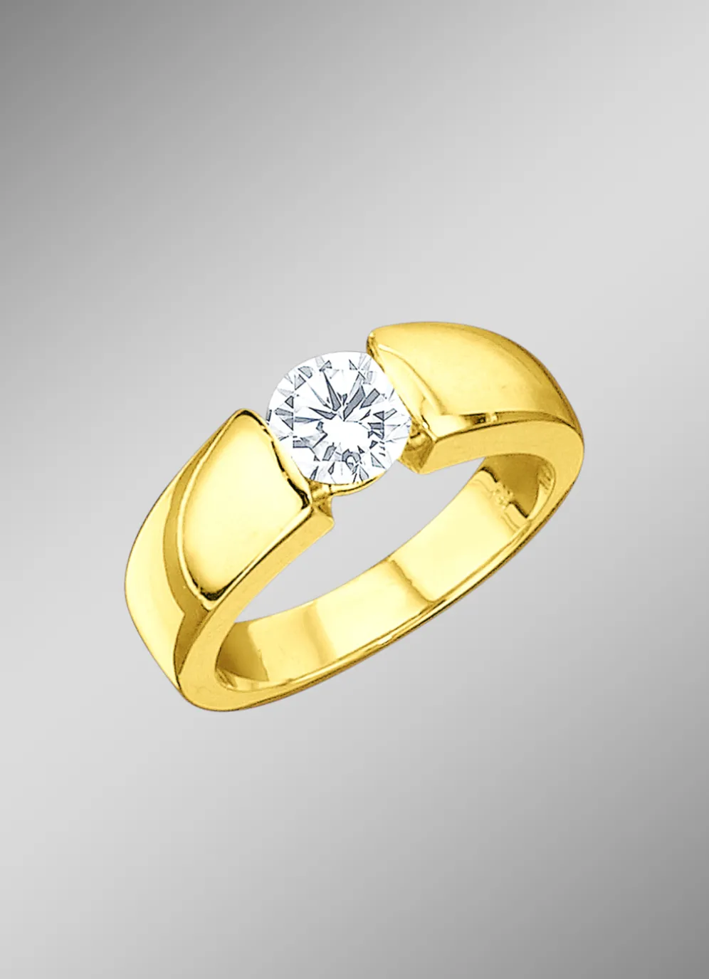 Vollmassiver Solitär-Damenring mit Brillant