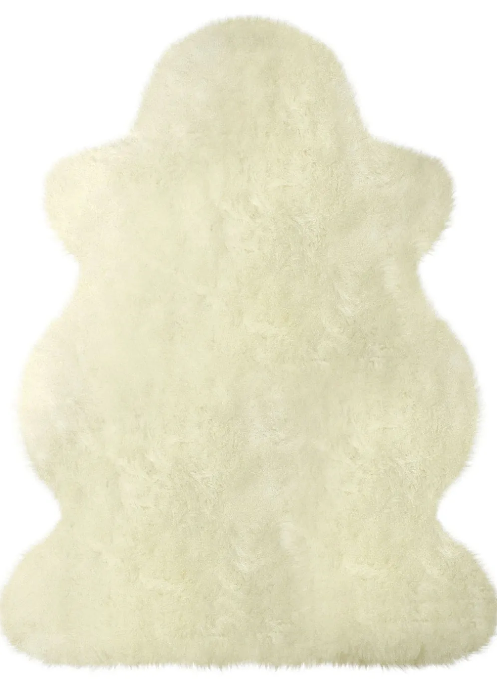Vorleger aus echtem Merino-Lammfell in Größe 001 (Vorleger, Länge ca. 80 cm) und in Naturweiss.