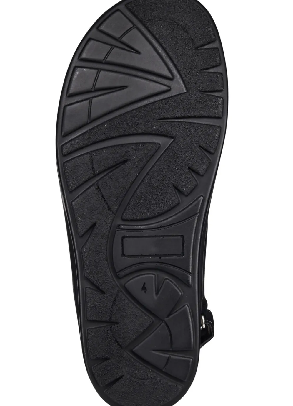 Sandalen aus genarbtem Rind-Nappaleder, in Schwarz mit Rind-Nubukleder kombiniert: Weite H, drei verstellbare Klettspangen, Lederfutter, herausnehmbares Lederfußbett, PU-Luftpolster-Profilsohle mit Abrollfunktion und breiter Auftrittsfläche, daher Gelenk unterstützend. 30 mm Keilabsatz
