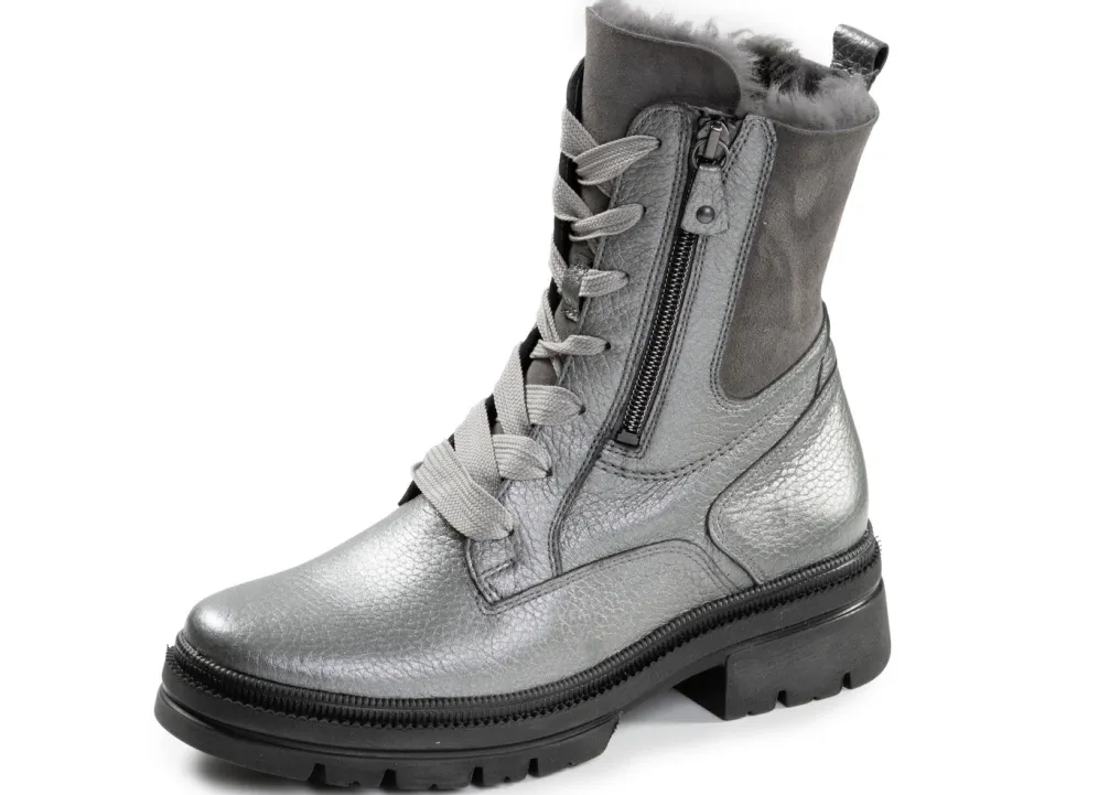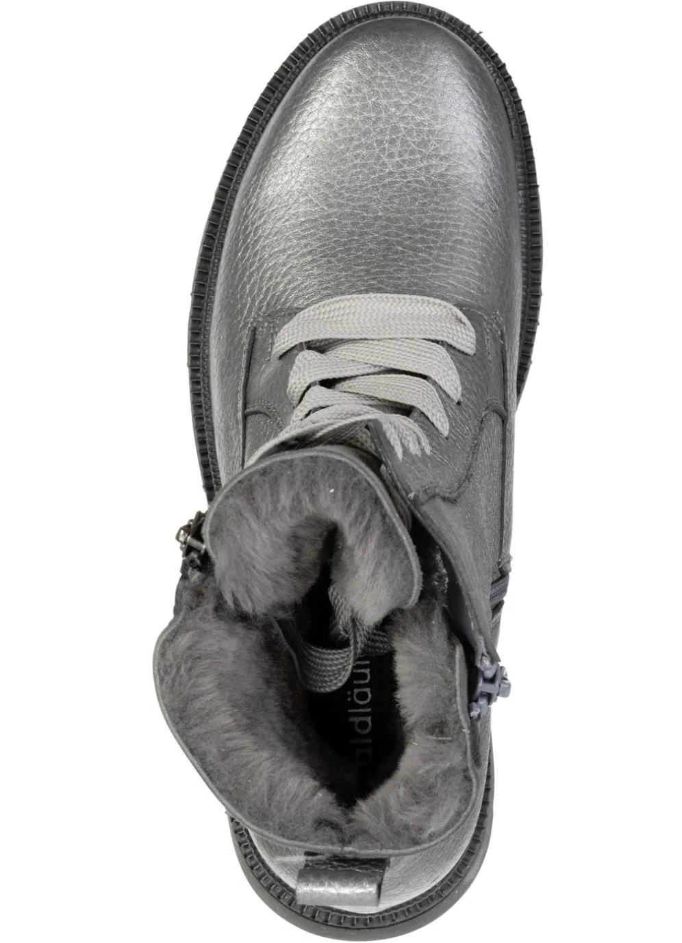 Waldläufer, gefütterte Damen-Stiefeletten, Winterschuhe, Weite H, mit Lammfell in Schuhgröße 3 1/2 und in Altsilber.