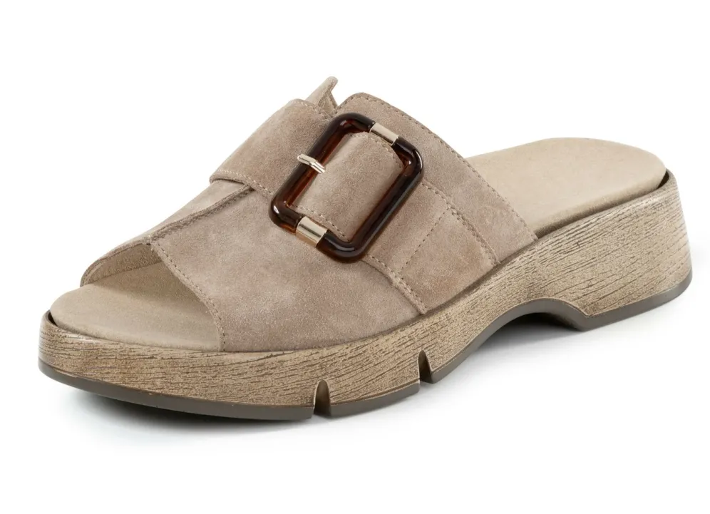 Waldläufer Pantolette mit Zier-Schließe in Sand und in Größe 41.