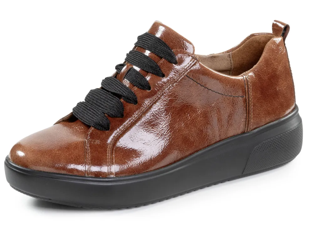 Angesagte Schnürschuhe aus bestem Knautschlackleder: Weite H, Quartier mit Lederfutter, herausnehmbares Lederfußbett, superleichte PU-Luftpolster-Profilsohle sowie 20 mm Keilabsatz