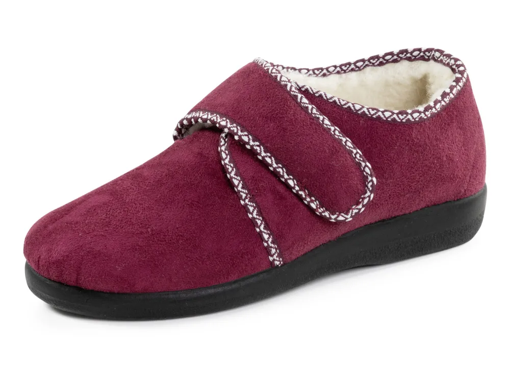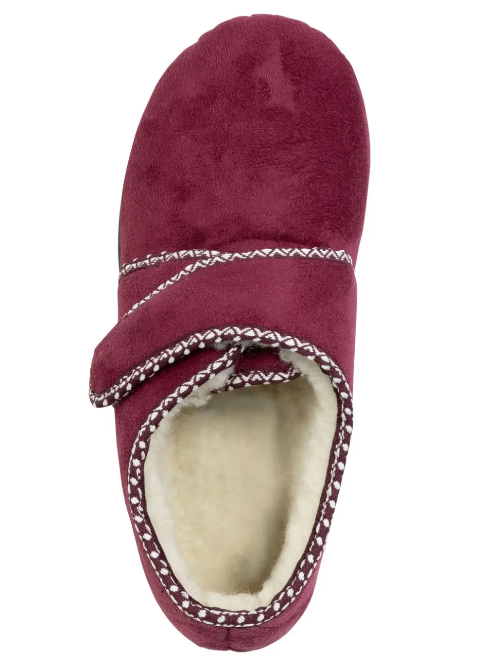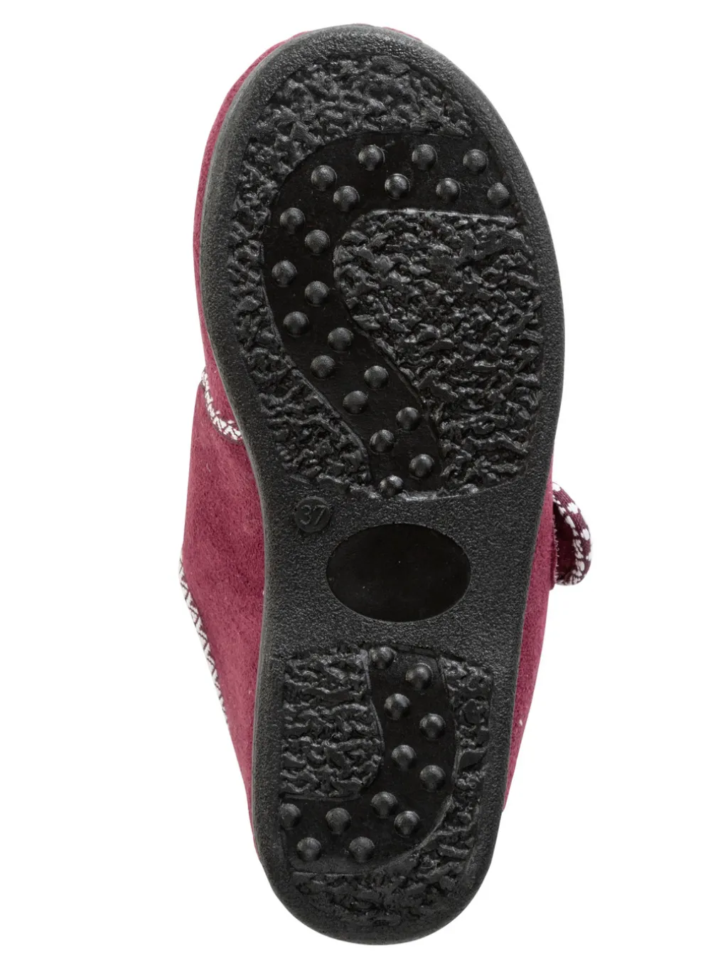 Warme Damen-Hausschuhe, Weite H, mit Klettverschluss in Bordeaux und in Größe 37.