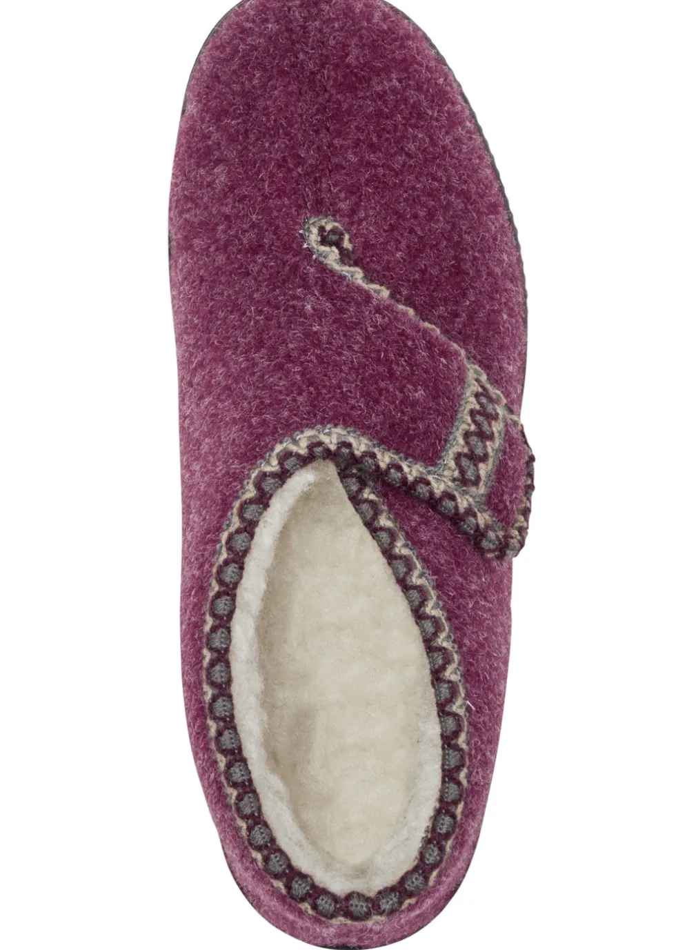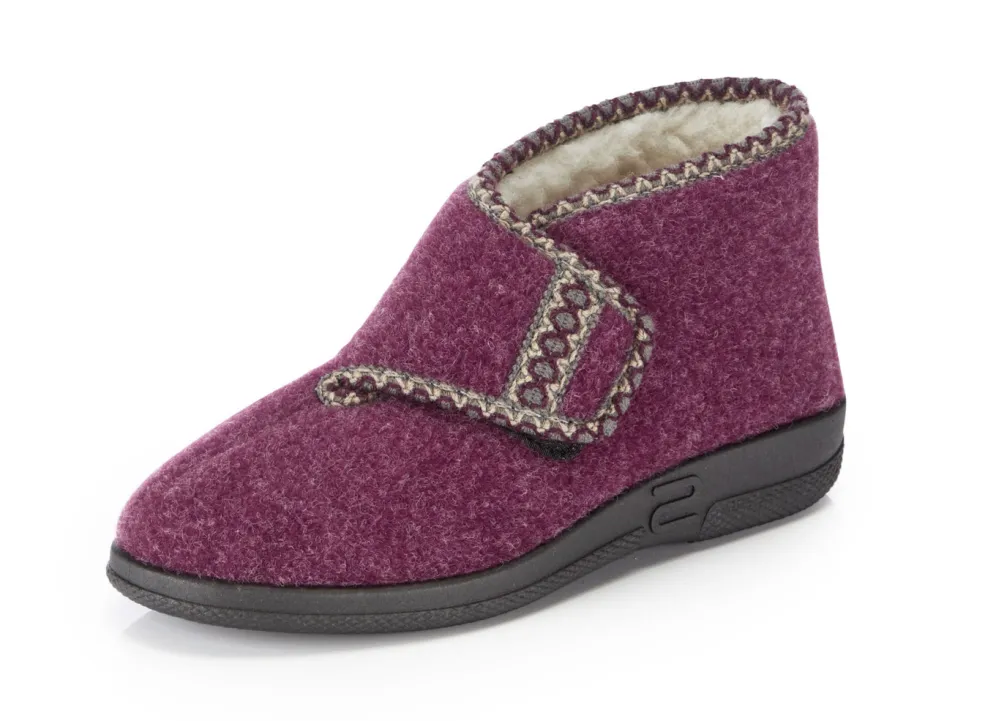Warme Damen-Hausschuhe, Weite H, mit Klettverschluss in Bordeaux und in Größe 42.