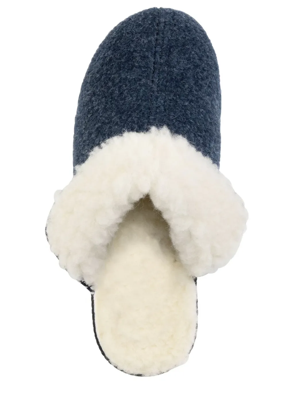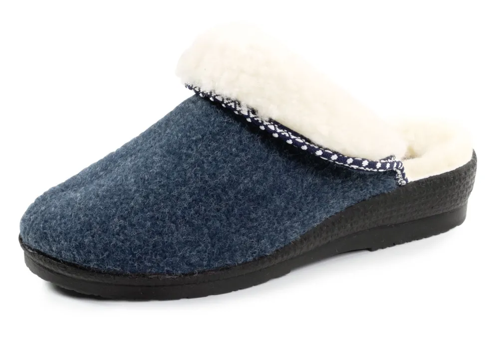 Warme Damen-Hausschuhe, Weite H, mit Wolle in Blau und in Größe 41.