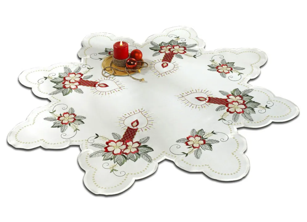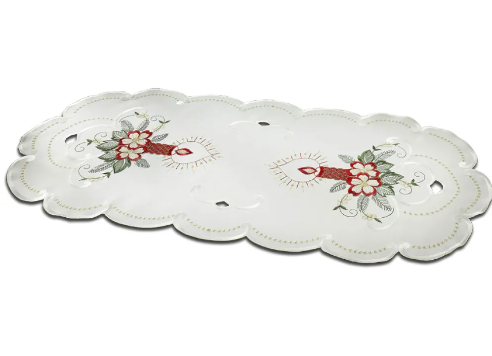Weihnachtliche Tisch- und Raumdekoration in Größe 130 (Deckchen, 30/ 45 cm) und in Weiss.