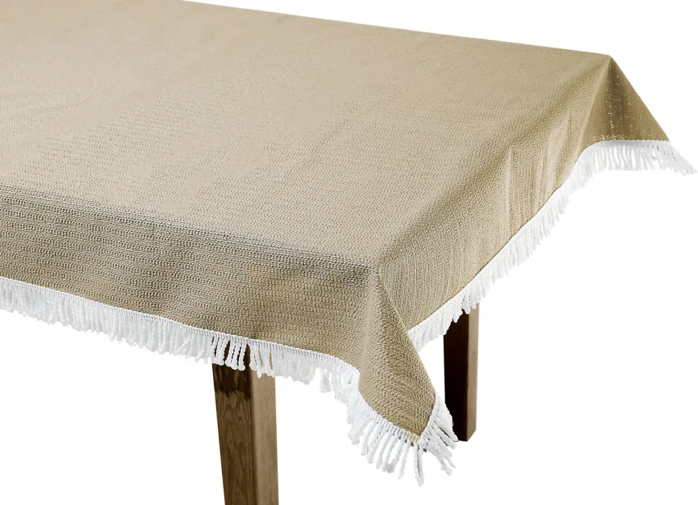 Mit dieser dekorativen Gartentischdecke kann der Sommer kommen! Durch die unempfindliche, rustikale Struktur hält die Decke mit besonders dekorativem Fransenabschluss jedem Wetter stand.