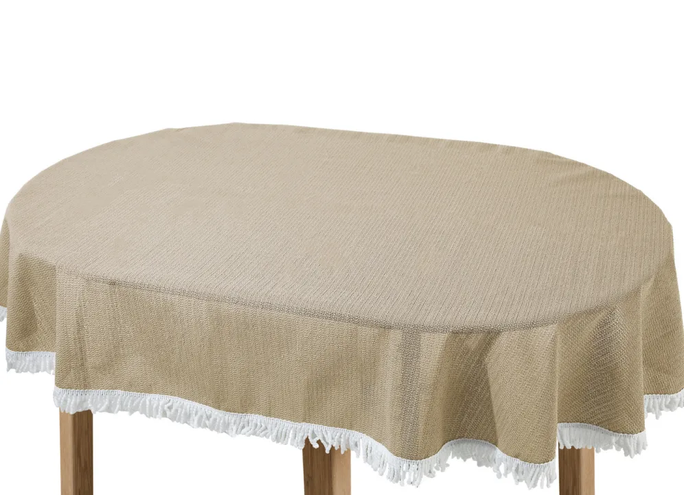 Wind- und wetterfeste Gartentischdecke mit Fransenabschluss