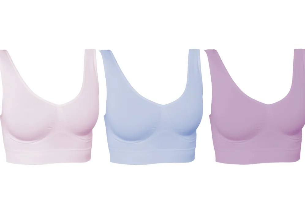 Wohlfühl-BH, 3er-Set in Größe XXL (48/50) und in Rosa-Lavendel-Blau.