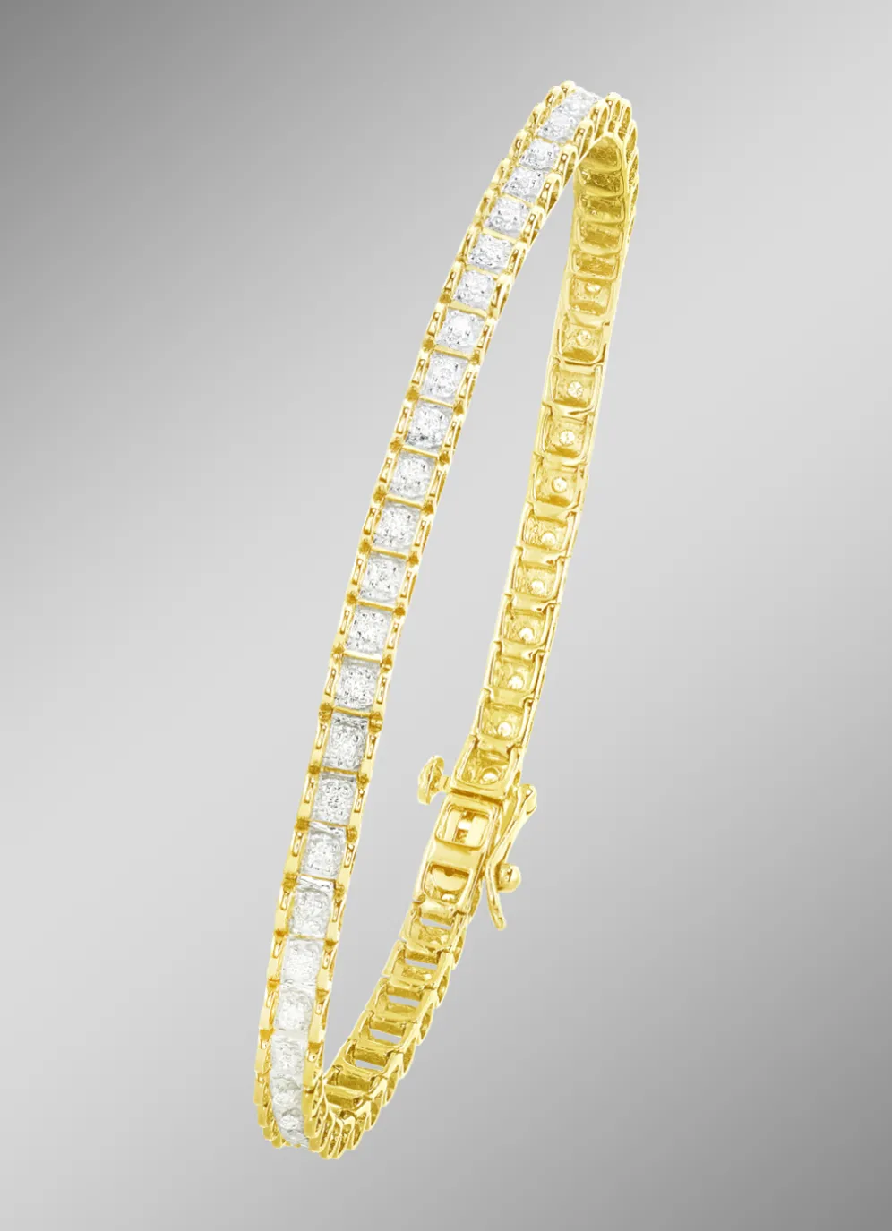 Atemberaubende Eleganz. Dieses Armband braucht kein verspieltes Design und keine Schnörkel! Es besticht durch seine hochwertigen Materialien, sein zeitloses Design und die präzise Verarbeitung. Das edel glänzende und bezaubernd funkelnde Armband passt zu allen Stilrichtungen, den verschiedensten Looks und versprüht einen klassischen Charme. Es ist aus Gold 585/- fein gefertigt und wird von 54 Brillanten, zusammen ca. 0,50 ct., Weiß, Piqué 1 geziert.