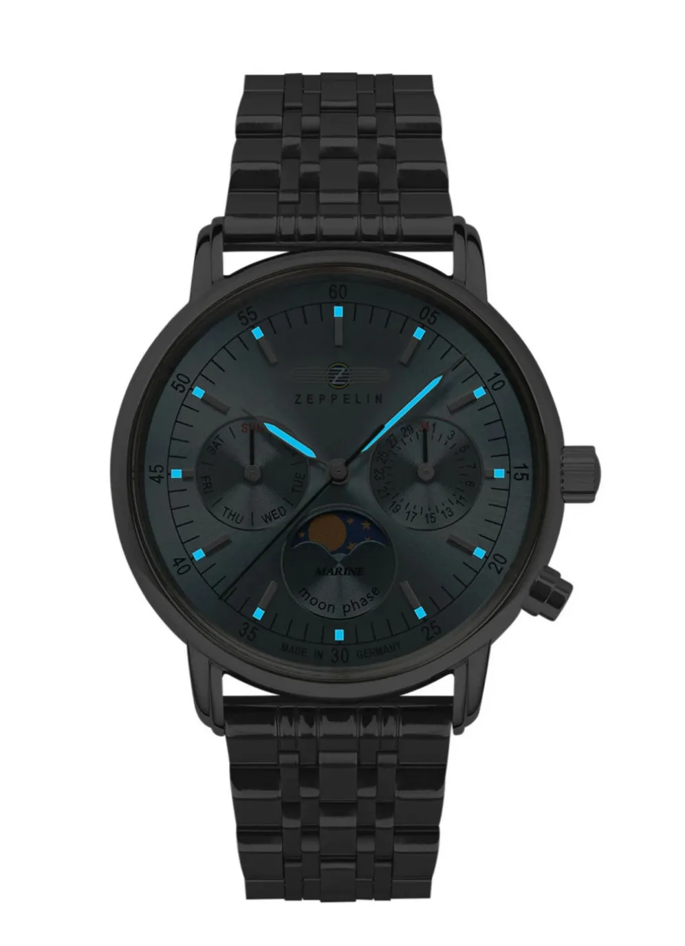 Sie lieben das Meer, die Schiffe und die Abenteuer? Dann ist die Zeppelin LZ 14 Marine die perfekte Uhr für Sie. Diese Damenuhr ist eine Hommage an die legendären Zeppeline, die einst die Welt eroberten. Mit ihrem edlen Design, ihrem hochwertigen Quarzwerk und ihrem eisblauem Zifferblatt mit Datum, Mondphase und Wochentag ist sie ein echter Hingucker an Ihrem Handgelenk.