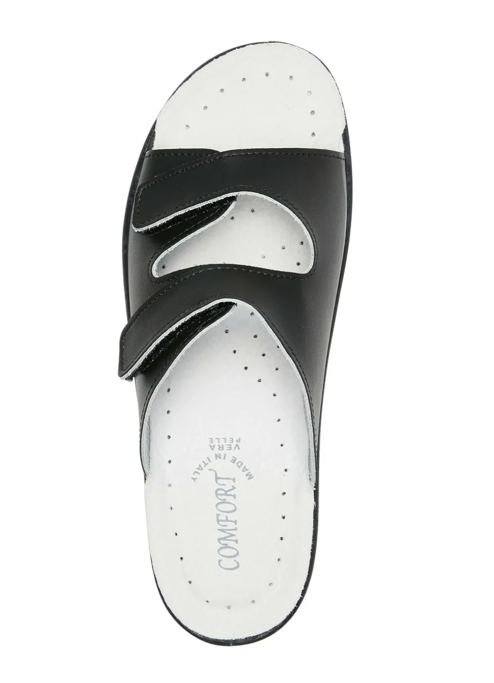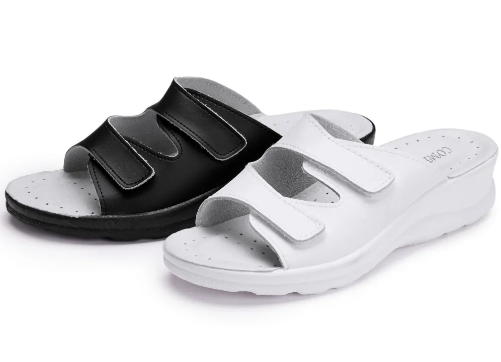 Zweierpack klassische Damen-Pantoletten, Weite H, mit Klettverschluss in 1X Weiss, 1X Schwarz und in Größe 38.