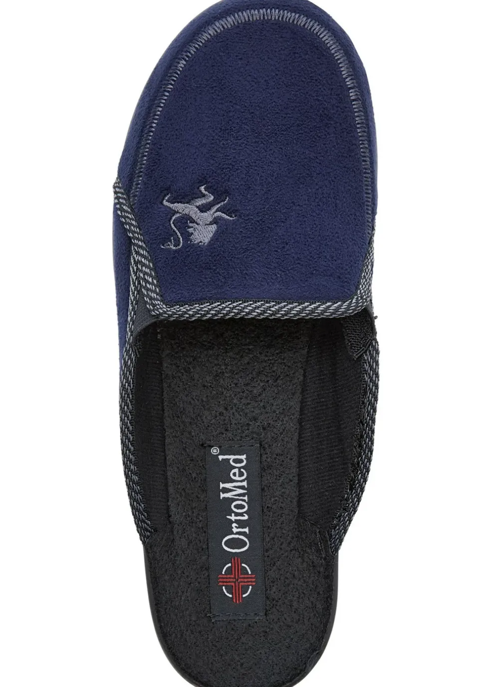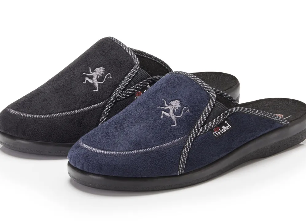 Zweierpack, klassische Herren-Hausschuhe, Weite H, mit Gummizug in Blau+Schwarz und in Größe 42.