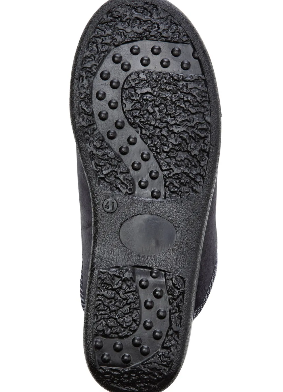 Hausschuhe aus weichem, kaschiertem Veloursmaterial, mit seitlichen Gummizügen: in Weite H, anatomisch geformtes Fußbett sowie superleichte PU-Laufsohle