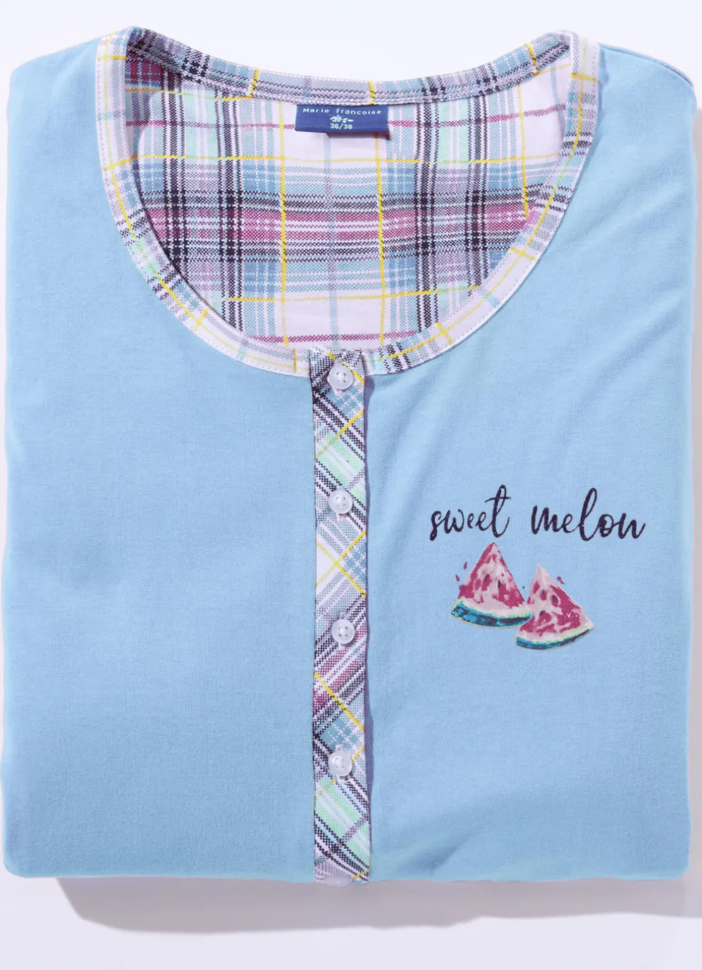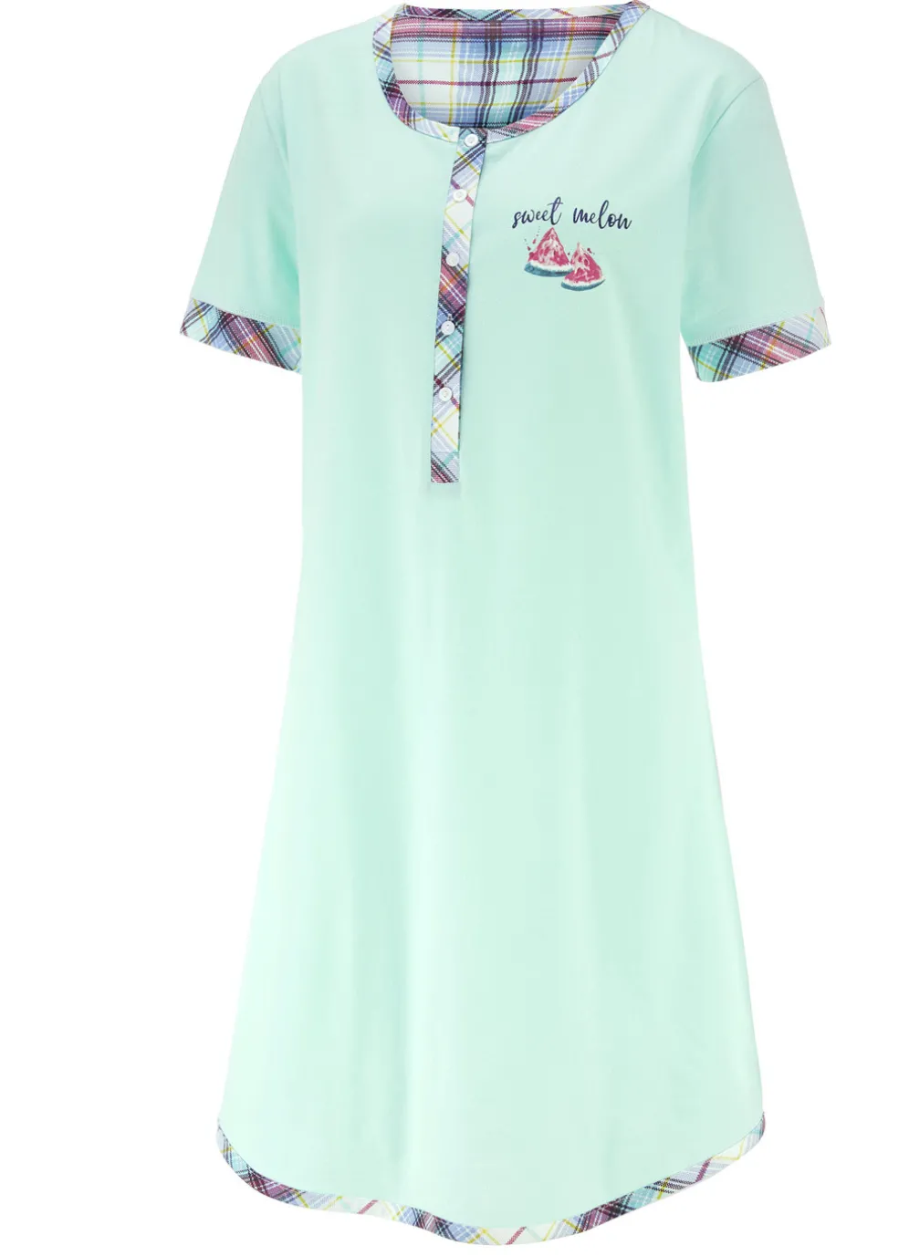 Kürzer geschnittenes Nachthemd im Zweierpack! Knopfleiste, Einfassungen, platzierter Druck, Blende an den Abschlüssen der kurzen Ärmel, abgerundeter Saum sowie innerer Rückensattel.