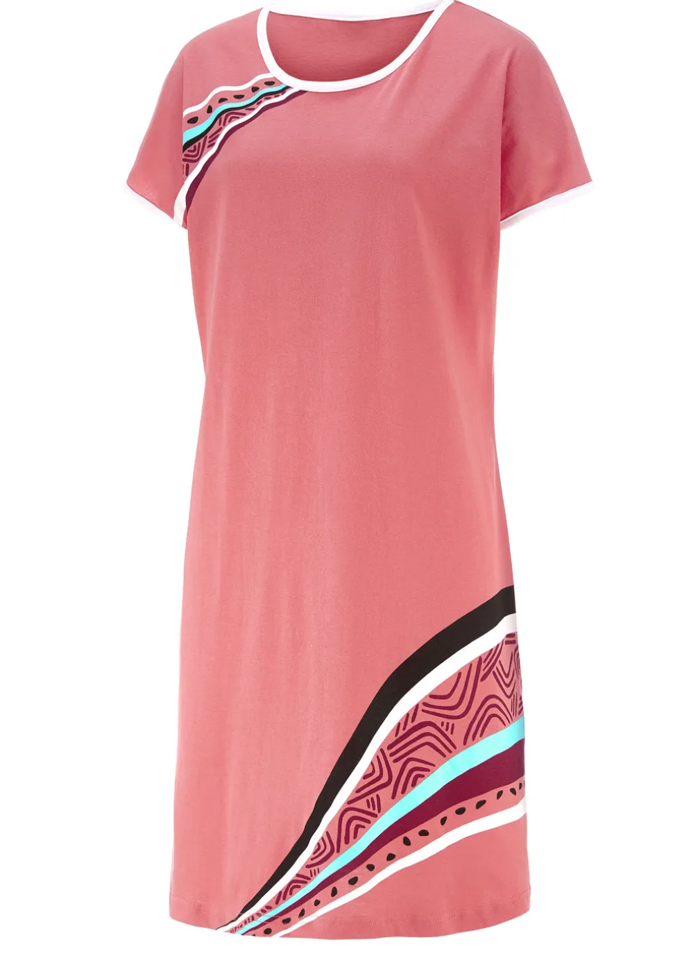Zweierpack Nachthemden, kürzer geschnitten aus Baumwolle in 1X Türkis, 1X Koralle und in Größe 36.