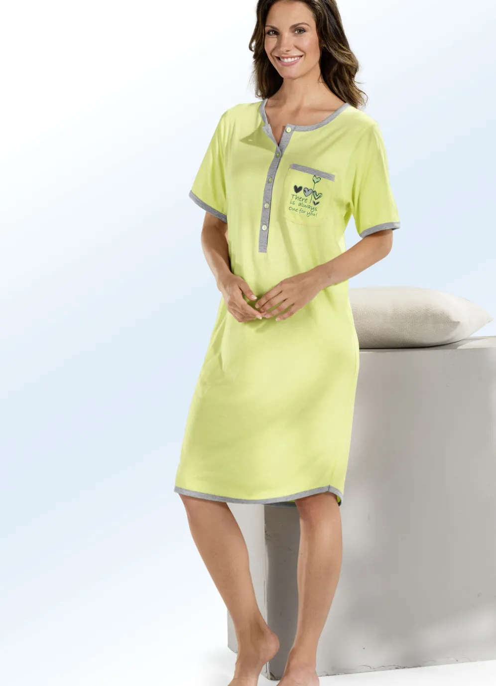 Tolles, knielanges Nachthemd im günstigen Zweierpack, mit langer Knopfleiste, platziertem Druck auf der aufgesetzten Brusttasche, Kontrasteinfassungen, kurzen Ärmeln sowie abgerundetem Saum.
