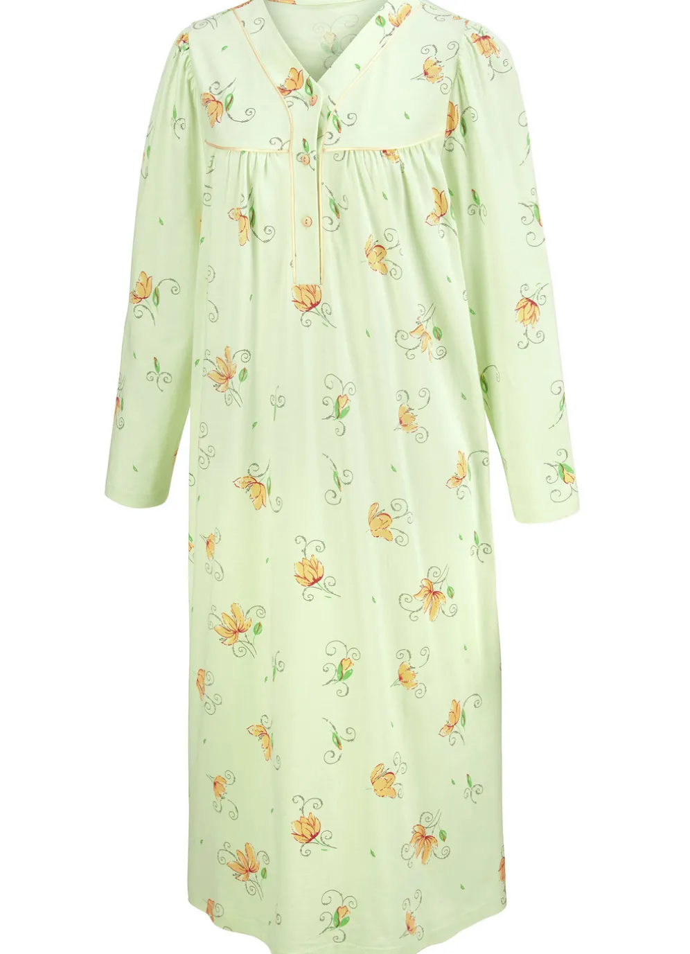 Zweierpack Nachthemden, Langarm mit Knopfleiste in Lindgrün/Rosé und in Größe 38.