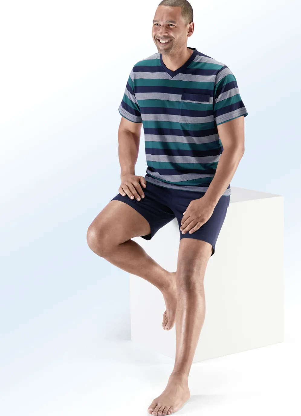 Traumhaftes Shorty im attraktiven Zweierpack! Oberteile mit V-Ausschnitt, garngefärbtem Ringeldessin,