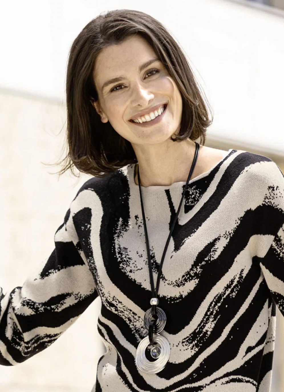 2-reihige Halskette mit Anhänger in Schwarz-Silber.