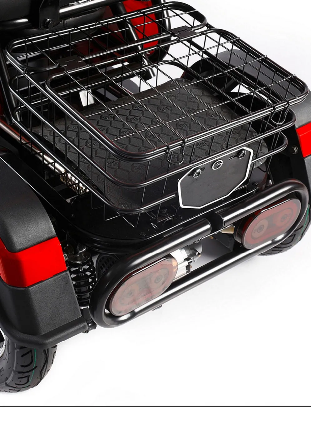 Das übersichtliche LCD Display zeigt Ihnen die Geschwindigkeit, die gefahrenen Kilometer, den aktuellen Ladestand und die Kontrollleuchten an. Verstellbarer Sitz mit Rückenlehne und Armstützen. Mit einer Fuß- und Handbremse. Blinkanlage und Beleuchtung vorne und hinten. Extragroßes, rutschfestes Trittbrett und Spritzwasserschutz. Das 3-Rad Elektromobil wird mit einem Korb vorne und einer Korbbox hinten geliefert und eignet sich daher ideal für kleinere Besorgungen oder Besuche bei Freunden und Verwandten. Gewicht inkl. Akku ca.: 101 kg, Zul. Gesamtgewicht: 200 kg. Maße: ca. L150xB76xH117 cm. 99% vormontiert. Leichte Endmontage.