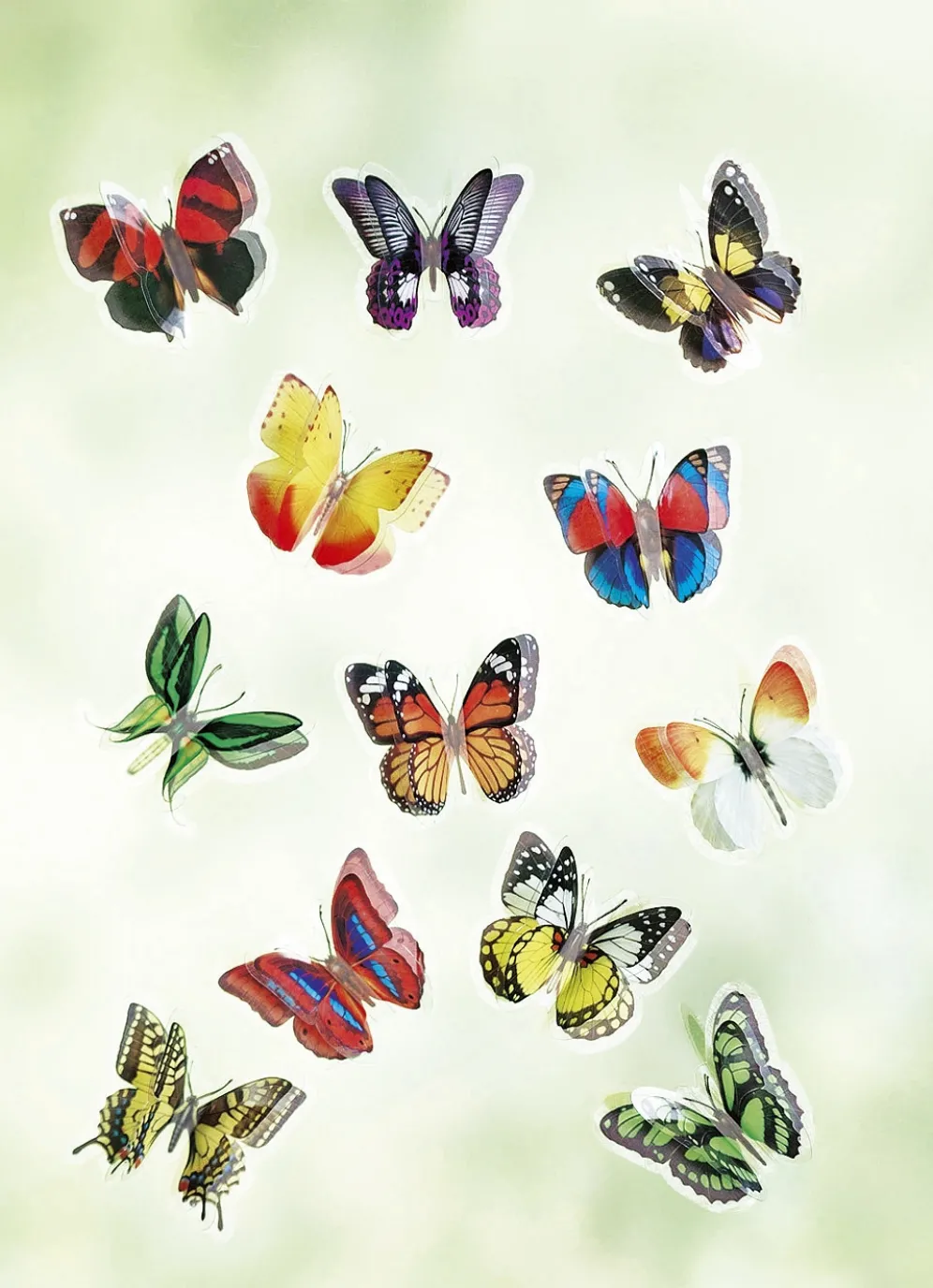 Diese bunten, detailliert gestalteten Schmetterlinge sind ein schöner Blickfang an Ihren Fensterscheiben. Mit originellem 3D-Effekt und leuchtenden Farben. Aus selbsthaftender Folie – problemlos aufkleben und wieder abziehen!