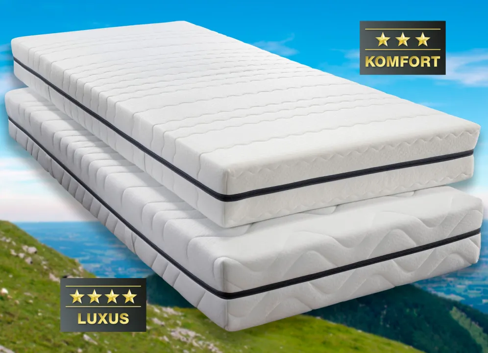 Komfort-Ausführung: mit einer angenehmen Höhe von ca. 18 cm und beidseitig mit bestens bewährten Vitacel®-Komfortschaumauflagen sowie Schulter-, Lenden- und Beckenzone für eine sehr gute Körperunterstützung und eine verbesserte Körperanpassung. Beide Liegeseiten bieten die gleiche Stützkraft, so dass die Matratzen gedreht und gewendet werden können.