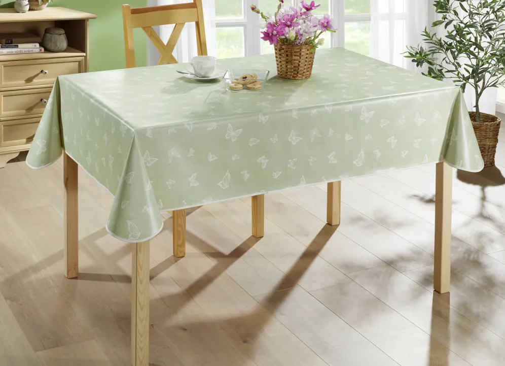 Schöne Schmetterlinge zeigen sich auf dieser tollen Wachstuch-Tischdecke, die sich völlig problemlos abwaschen lässt und somit für jede Gelegenheit – auch für den Einsatz im Freien – geeignet ist. Mit farblich abgestimmtem Schrägband gefertigt. Qualität: 100% Polyvinylchlorid, phthalatfrei