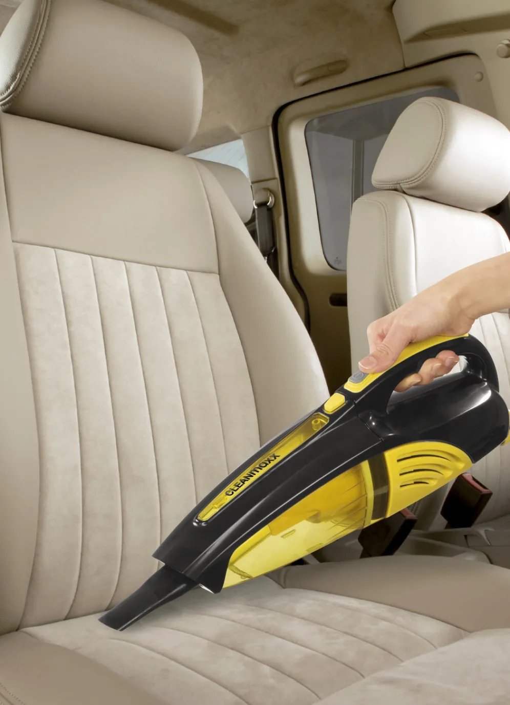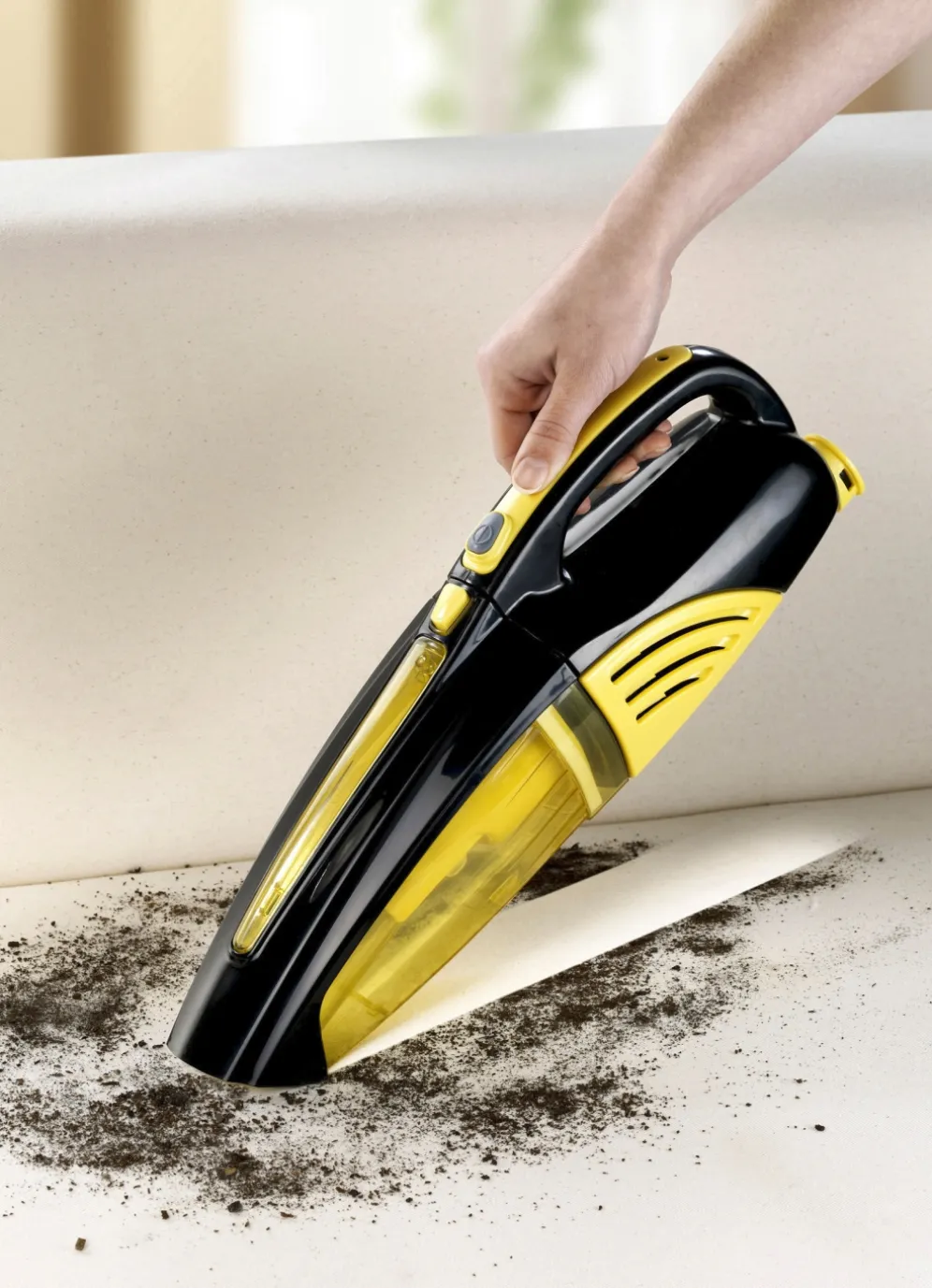 Akku-Handstaubsauger 2-in-1 in Schwarz/Gelb.