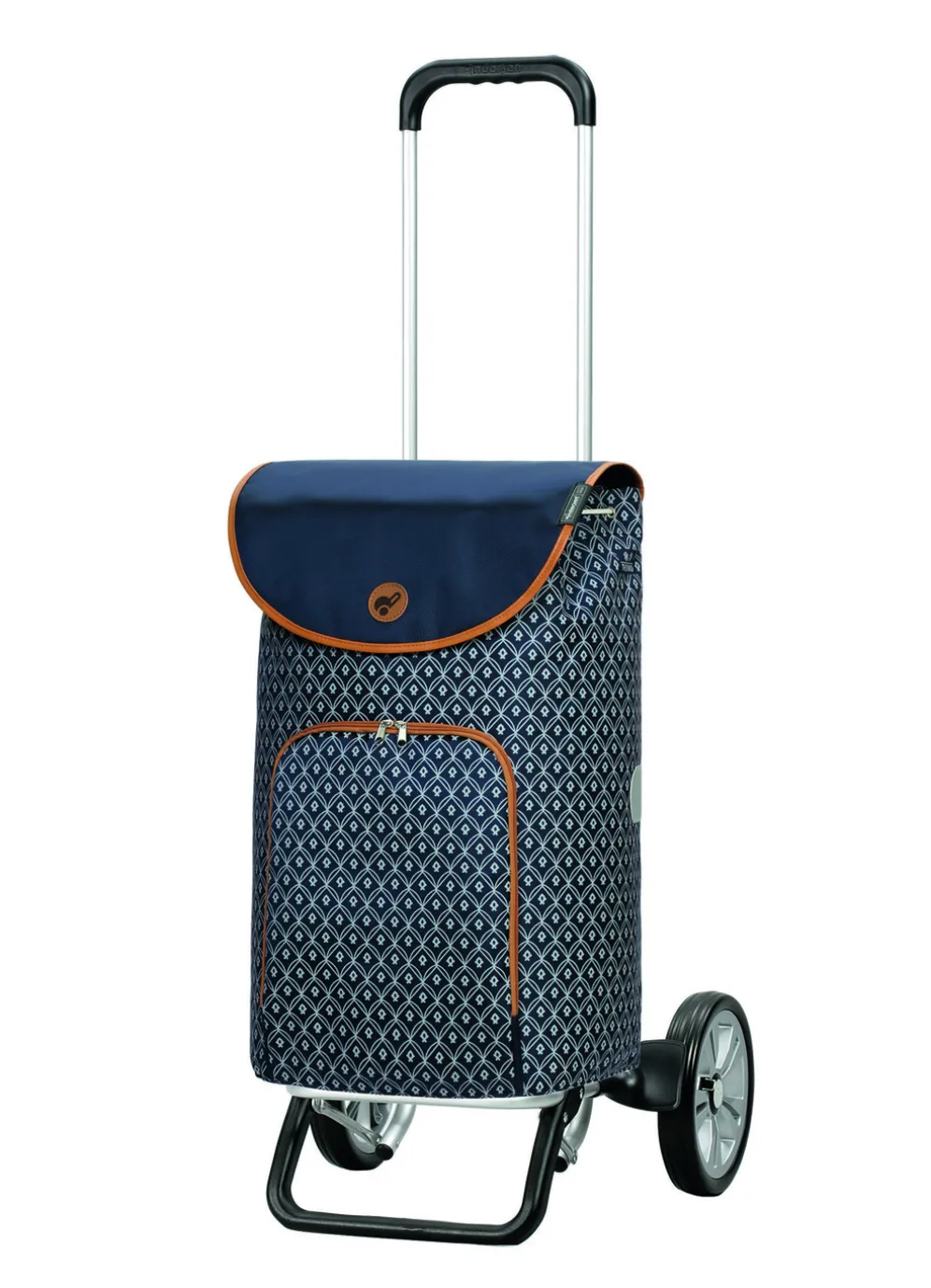 Die Shopper® Tasche Famke ist ein Blickfang mit orientalischem Muster, inspiriert von 1001 Nacht, auf zeitlosem blauem Hintergrund. Mit 47 Litern Fassungsvermögen ist sie ideal für Einkäufe oder Ausflüge. Die 16-Liter-Thermotasche hält Getränke und Lebensmittel frisch. Die Maße der Tasche betragen: H59xB35xT24 cm. Eine große Vortasche mit Reißverschluss bietet Platz für Kleinigkeiten. Der runde Deckel schließt mit einem Kordelzug, die Tasche ist wasserabweisend und verfügt über Reflektoren. Leicht abnehmbar und flach zusammenfaltbar bei Nichtgebrauch.