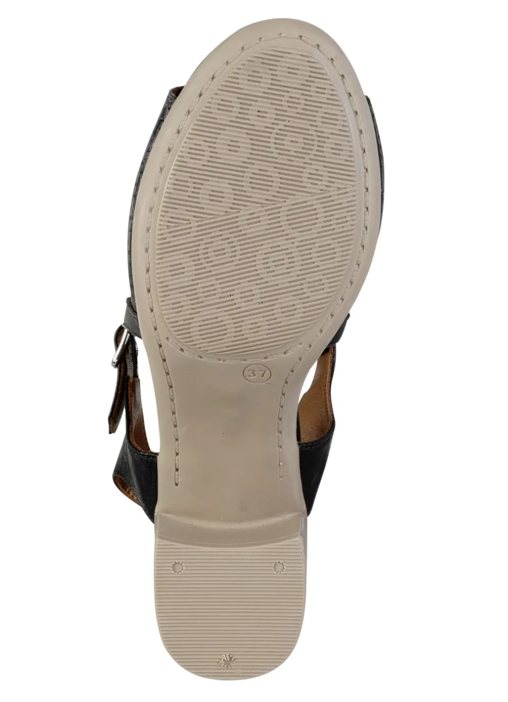 Aktuelle Sandalette aus weichem Nappaleder mit Zier-Perforation: verstellbare Schließe mit verdecktem Gummizug, Lederfutter, Lederdecksohle, TR-Riffelsohle sowie 55 mm Blockabsatz