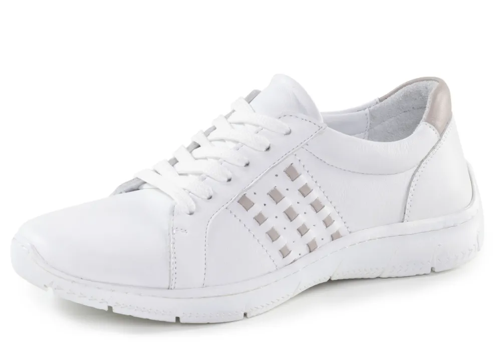 Schnürschuh aus Nappaleder, mit Kontrastdurchzügen: Weite G, Lederfutter, herausnehmbares Lederfußbett, leichte PU-Profilsohle, 15 mm Keilabsatz