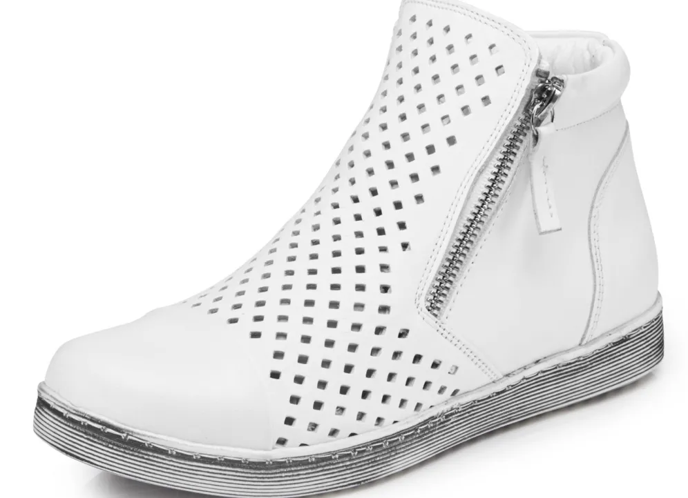 Andrea Conti, sommerliche Damen-Stiefeletten, mit herausnehmbarem Fußbett in Weiss und in Größe 40.