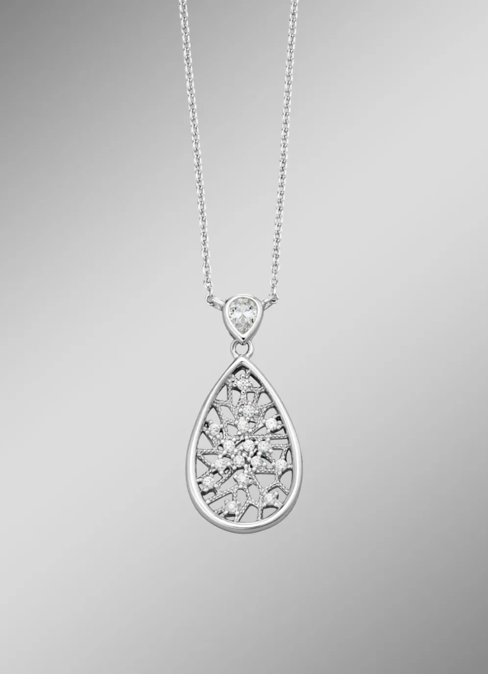 Eleganz trifft auf zeitlose Schönheit: Dieser Anhänger aus feinem Silber 925/- ist mit funkelnden synthetischen Zirkonia verziert und überzeugt durch seine bewegliche, raffinierte Gestaltung. Die polierte Ankerkette mit einer Länge von 45 cm liegt angenehm am Hals und wird durch einen sicheren Karabinerverschluss ergänzt. Mit einer Länge von 25 mm ist der Anhänger ein filigraner Blickfang, der jeden Look aufwertet. Perfekt für besondere Anlässe oder den Alltag – dieses Schmuckstück begeistert durch Stil und Qualität.
