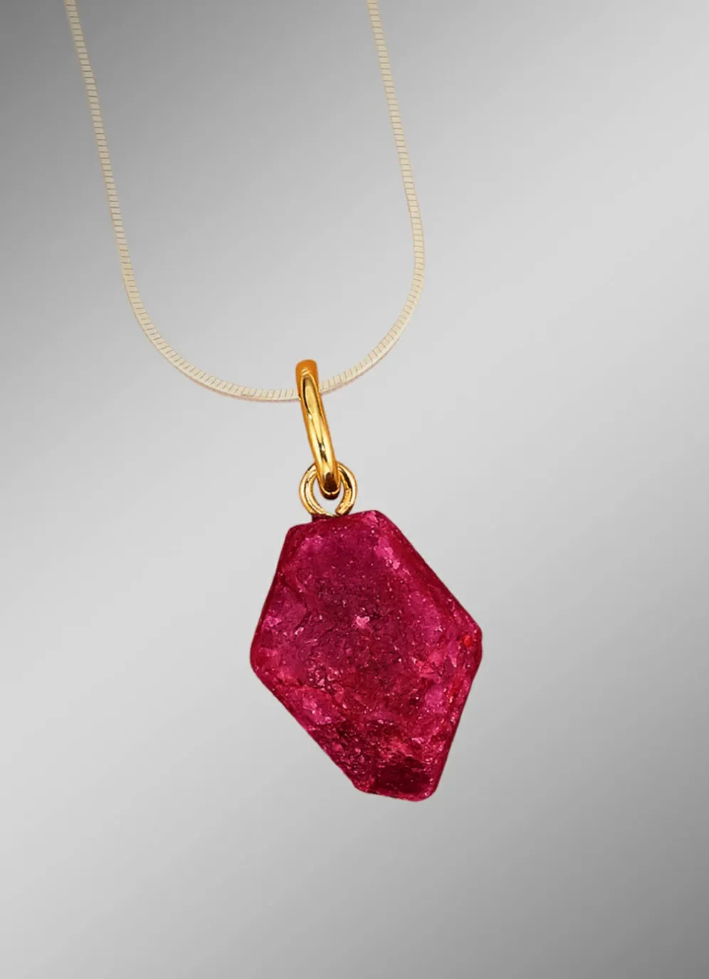 Da der Roh-Rubin in Größe und Form variieren kann, ist jeder Anhänger ein unverwechselbares Unikat!