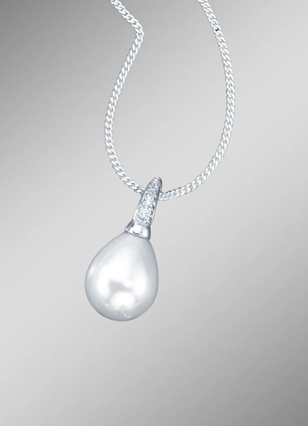 Anhänger mit Kette und großem Muschelperltropfen in der Legierung Silber 925/- fein.