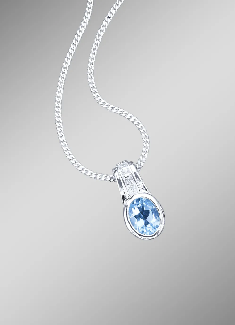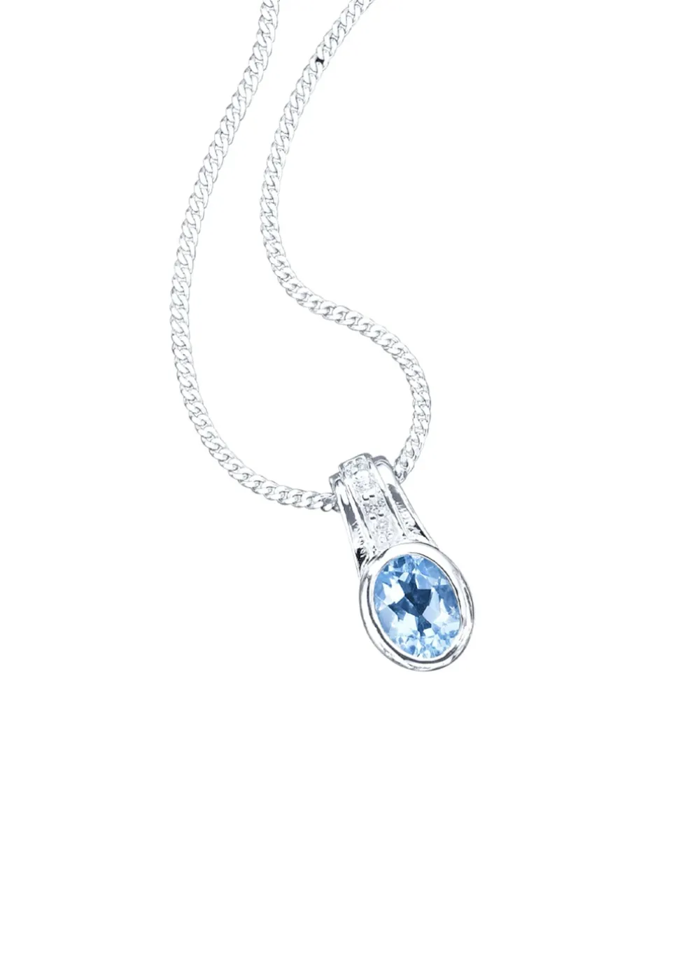 Im eleganten Design präsentiert sich dieser massive Anhänger mit einer 45 cm langen Panzerkette in Silber 925/- fein. Strahlender Mittelpunkt dieses Schmuckstücks ist ein echter Blautopas und synth. Zirkonia.