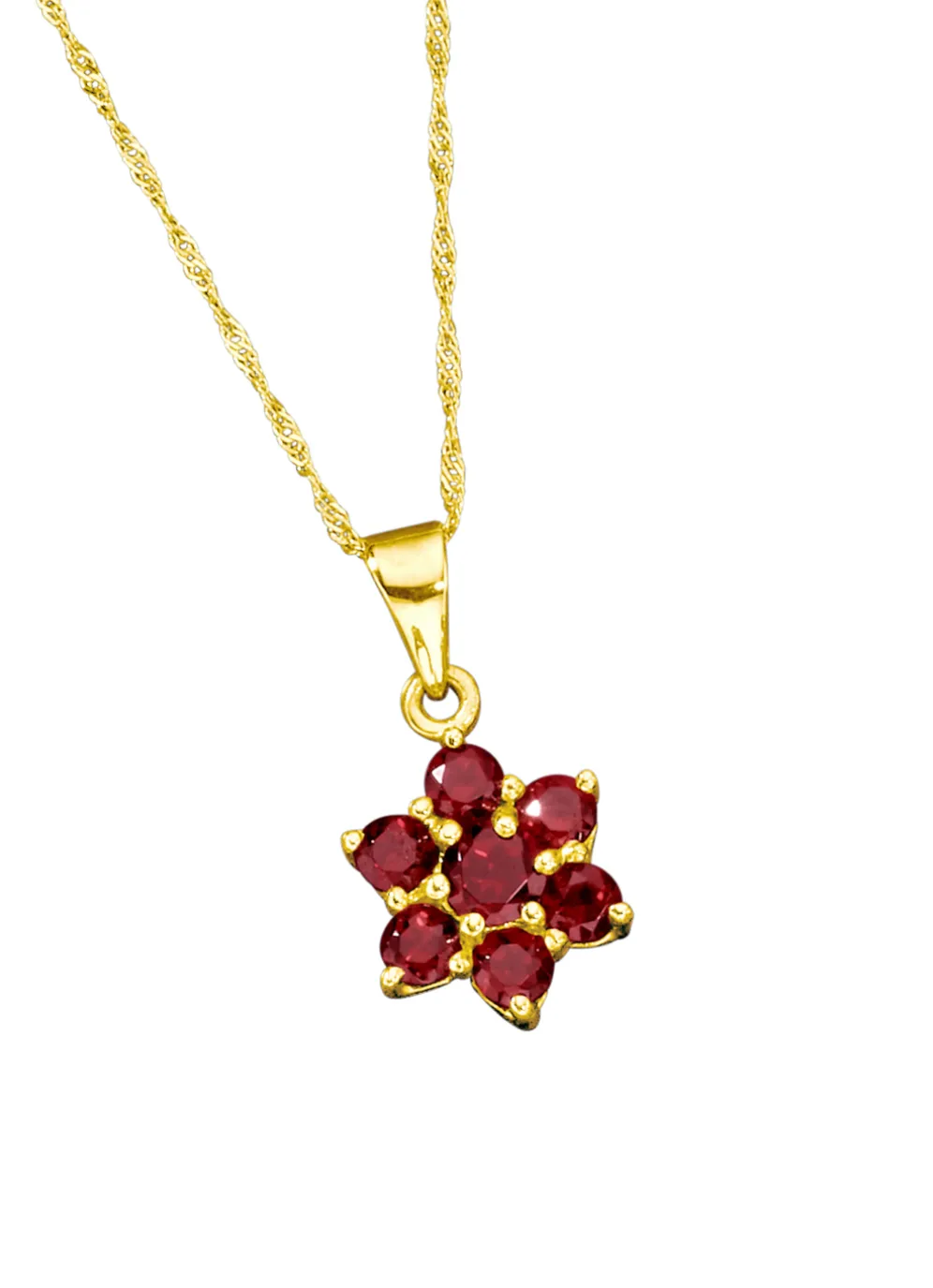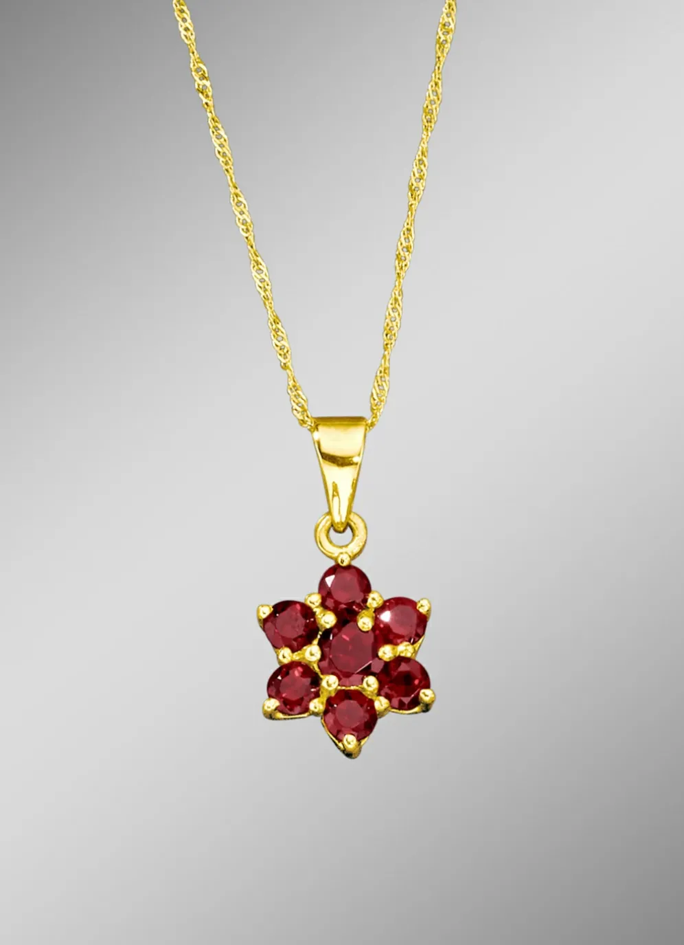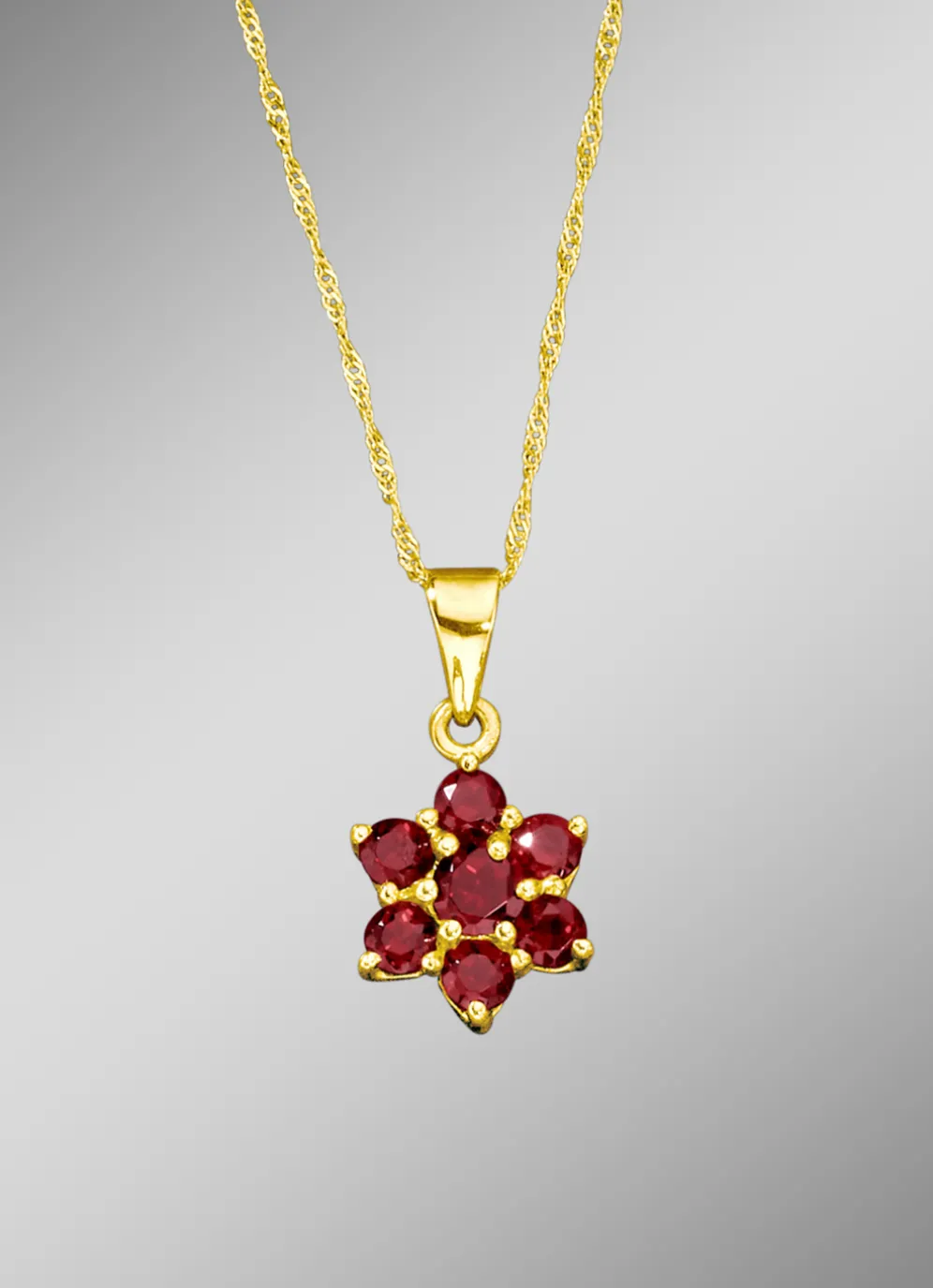 Das edle Farbspiel aus Gold 585/- fein oder aus Gold 333/- fein und den 7 dunkelrot funkelnden Granaten