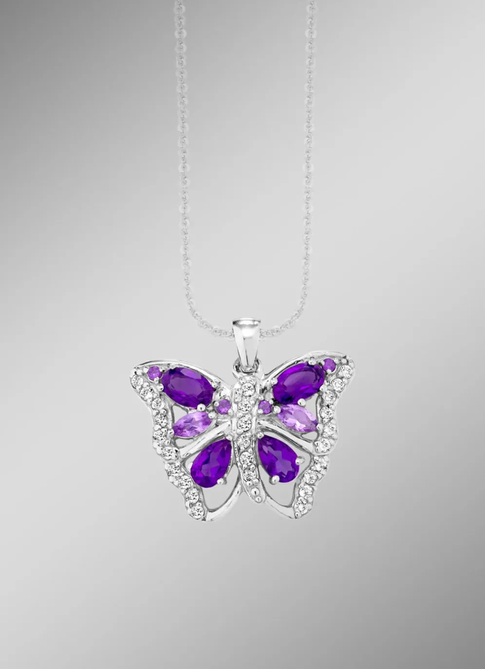 Dieser wunderschöne Anhänger aus Silber 925/ F ist ein elegantes Schmuckstück, das zu jedem Outfit passt. Der Schmetterling aus Weisstopas und Amethyst verleiht ihm eine besondere Note und macht ihn zu einem echten Hingucker. Mit einer Größe von 15 x 20 mm ist er groß genug, um aufzufallen, aber nicht so schwer, dass er unbequem zu tragen ist.