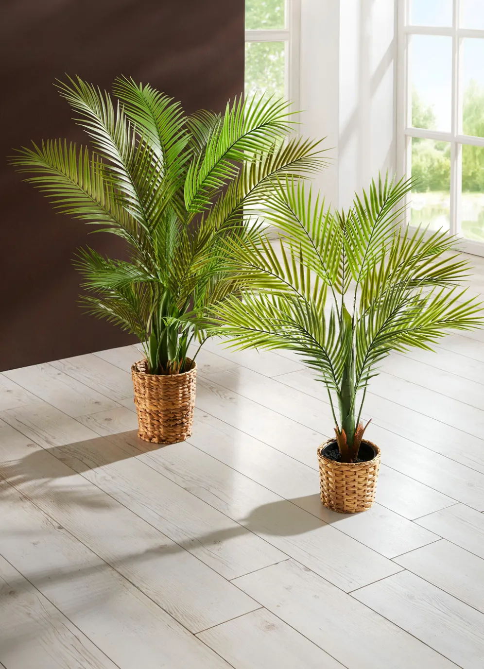 Absolut pflegeleicht und ein zeitloser Blickfang ist diese tolle Arecapalme. Selbst in der dunkelsten Ecke des Zimmers bleibt sie schön grün. Aus hochwertigem Kunstmaterial hergestellt und fest in einen schwarzen Kunststofftopf eingesetzt.