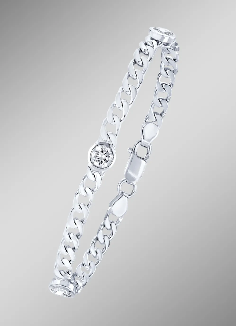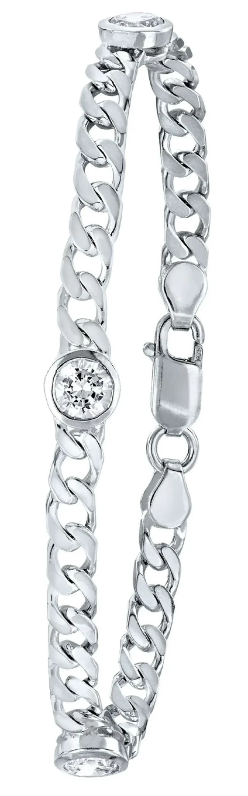 Dieses elegante Armband in Panzer-Design ist aus glänzendem Silber 925/- fein gefertigt und ist 19,5 cm lang. Die gleichmäßig platzierten synth. Zirkonia vervollständigen den Look dieses Armkettchens. Der schöne Armschmuck ist an jedem Handgelenk ein stilvoller Klassiker.