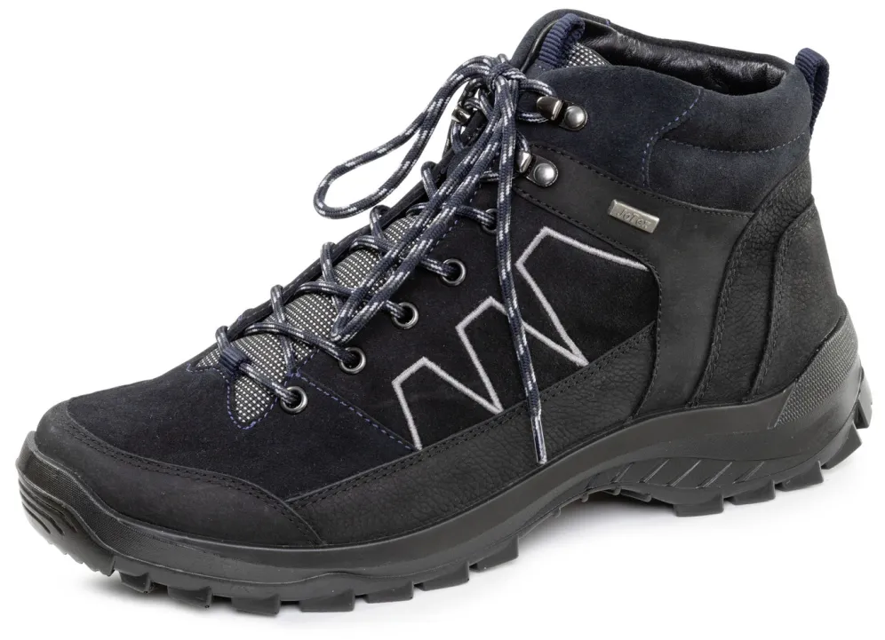 Atmungsaktive Herren-Boots, Weite K, mit herausnehmbarem Fußbett in Schwarz-Nachtblau und in Größe 45.